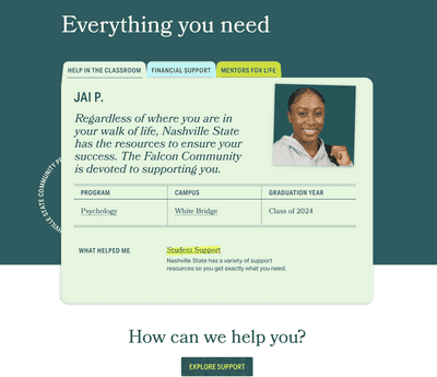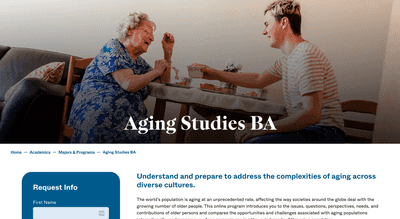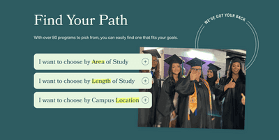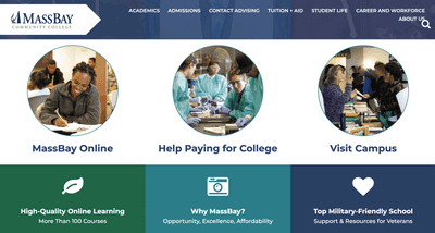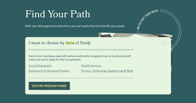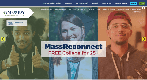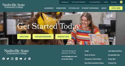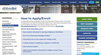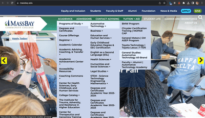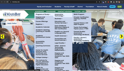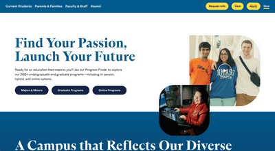 - Sticky header nav does not list prospective students as a persona, but targets them with the three main CTA buttons