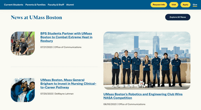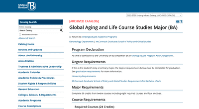 - Catalog uses Acalog via custom subdomain (catalog.umb.edu), styled reasonably well